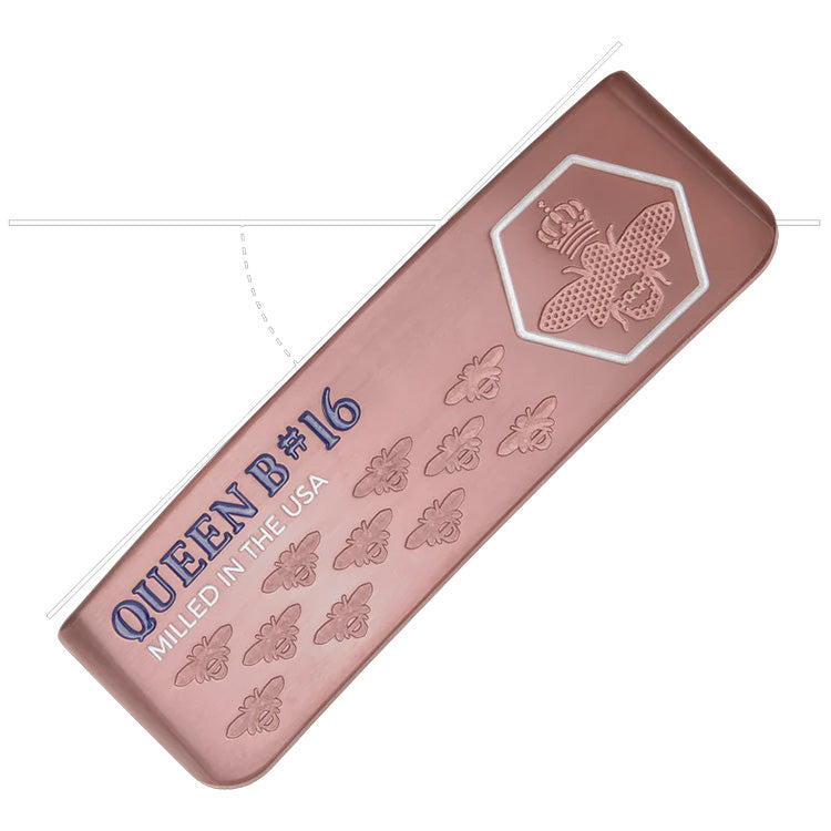 The Queen B 16 putter elevates the traditional blade design with a wider flange, crowned topline, and chamfered bumpers for added aesthetic and performance. The Center of Gravity aligns with the flange for stability, while Mini Honeycomb™ Face Milling provides the softest feel yet. Finished in Royal Rose PVD and crafted from 303 Stainless Steel, this putter offers exceptional durability, responsiveness, and performance.