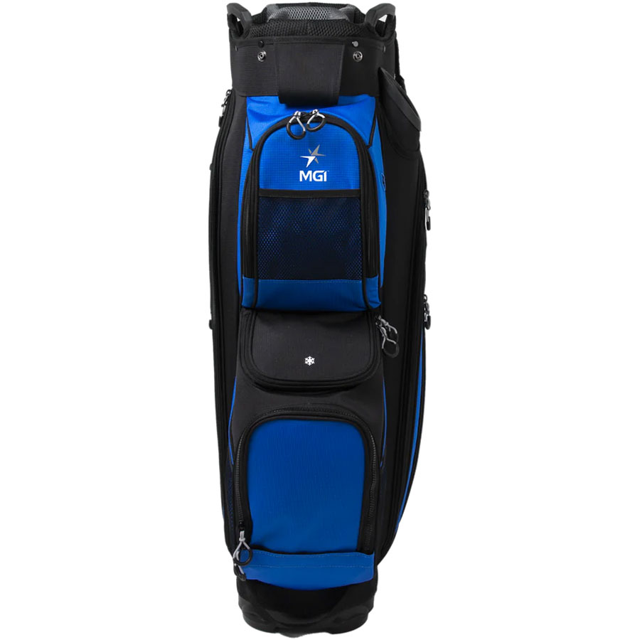 Enjoy lightweight convenience and comprehensive storage with this cart bag, offering 14 full-length dividers and a secure fit on MGI Zip Series caddies.