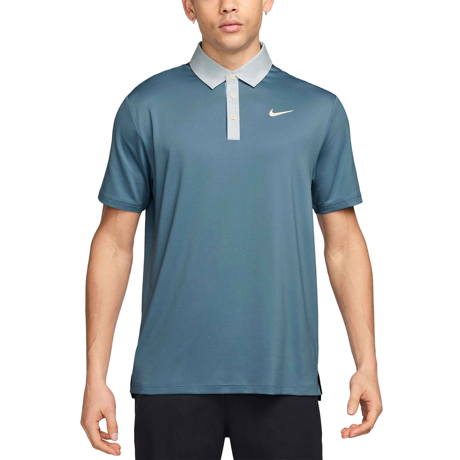 Nike Dri-Fit Tour Contrast Polo blends lightweight breathability and stretch-knit fabric for a polished, swing-ready look.