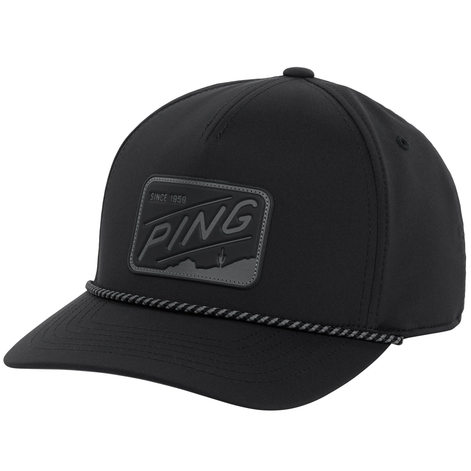 The PING Phoenician Hat showcases a scenic tribute to PING’s Phoenix roots. A debossed leather patch and rope-accented bill combine with structured comfort and stretch fabric for a premium look that stands out on the course.