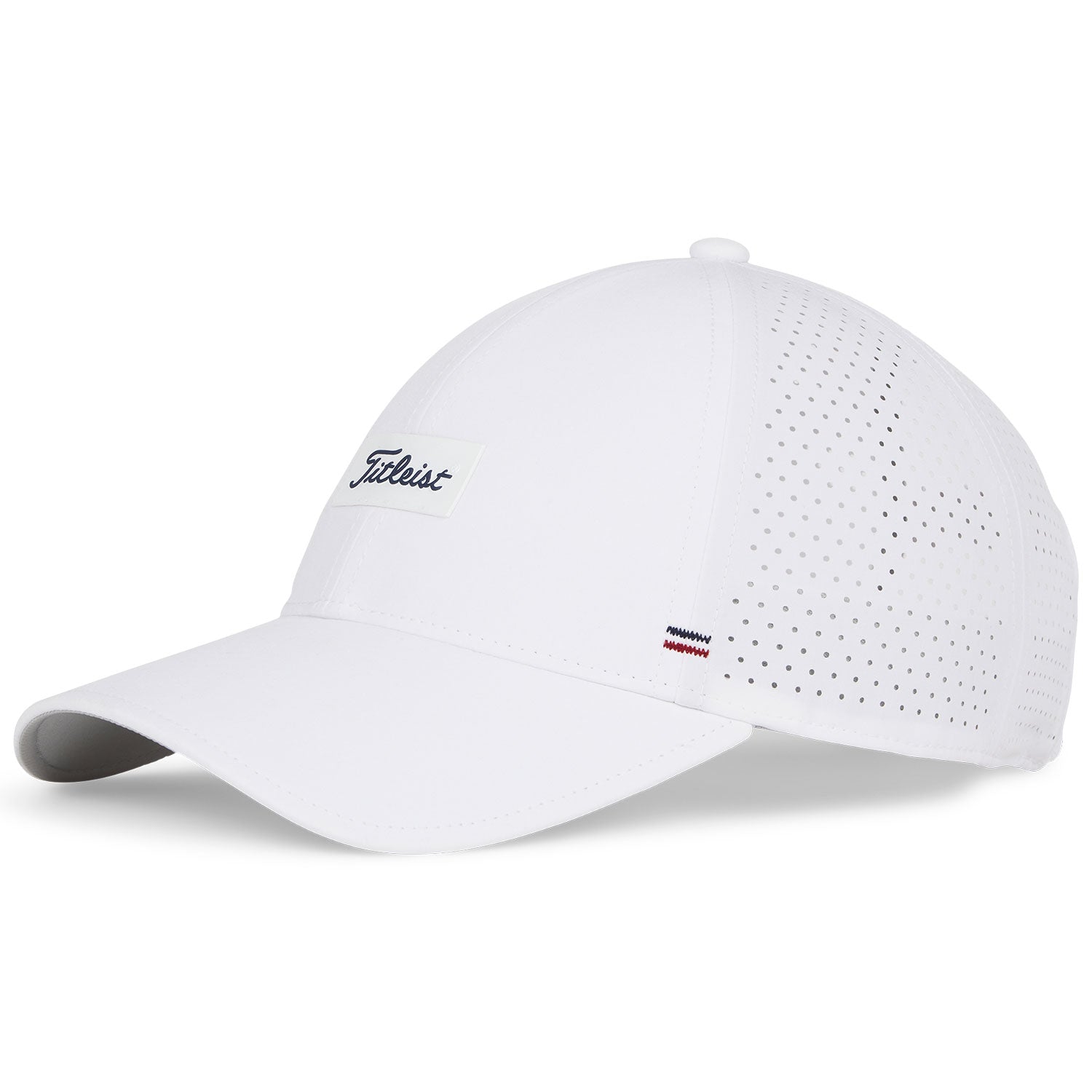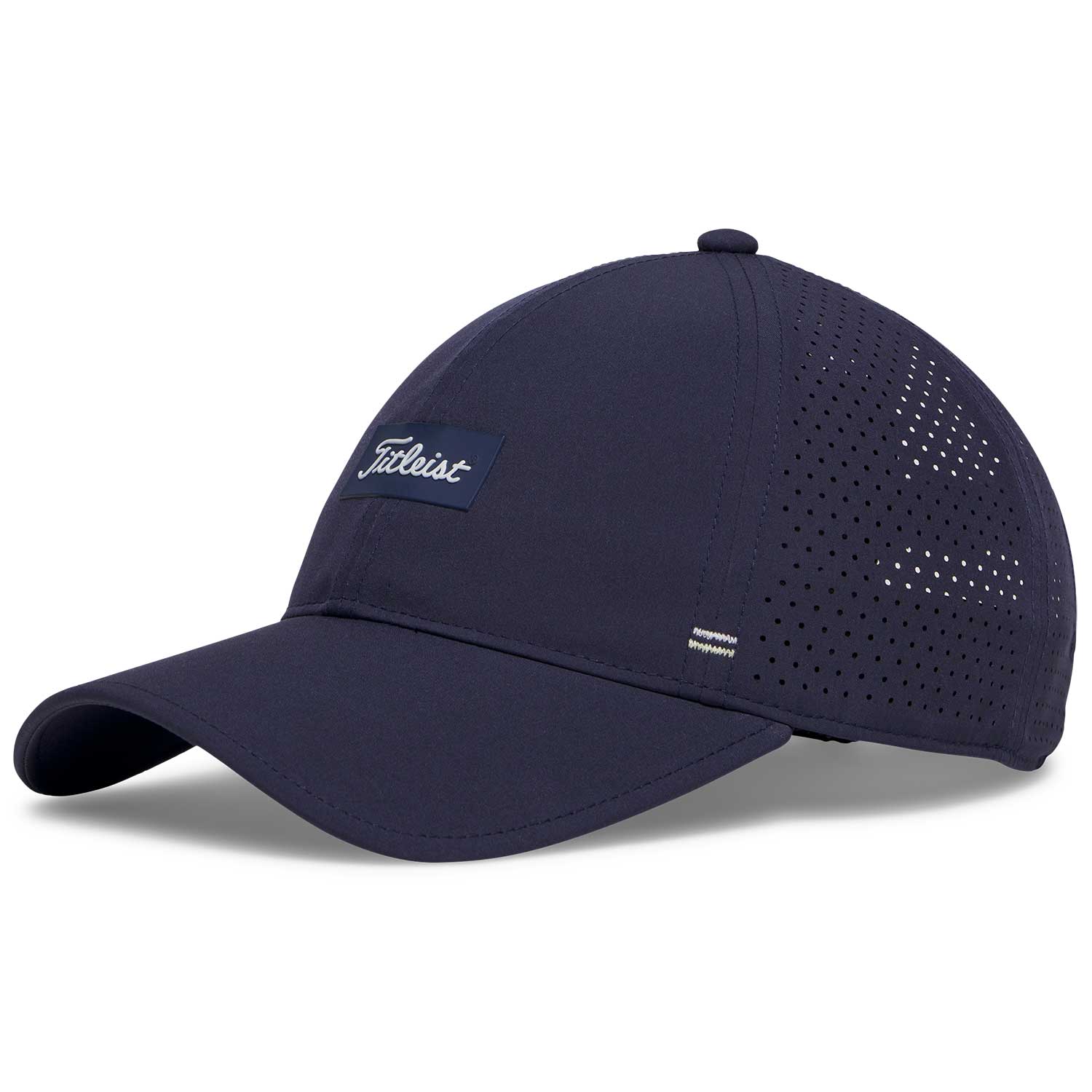 The Titleist Women’s Charleston Breezer Hat features lightweight stretch breezer material, starburst perforated panels for airflow, a standard curved bill, and adjustable Velcro fit for breathable on-course comfort.