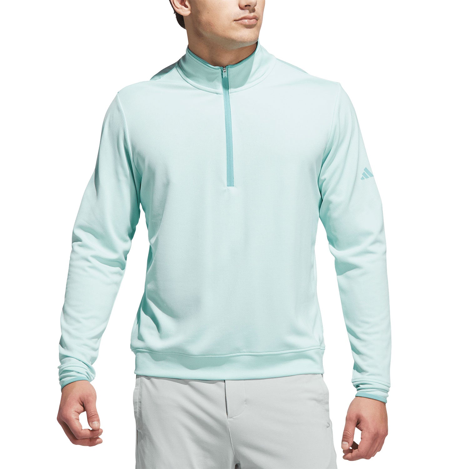 Turn heads on the golf course with this adidas men's UPF lightweight quarter zip pullover. This regular-fit, long-sleeved sweatshirt is knit from 100% recycled polyester - a nod to Primegreen sustainability commitment. Light in weight and steeped in style, it features a quarter zip silhouette and offers UPF 50+ sun protection for those bright days on the fairway.