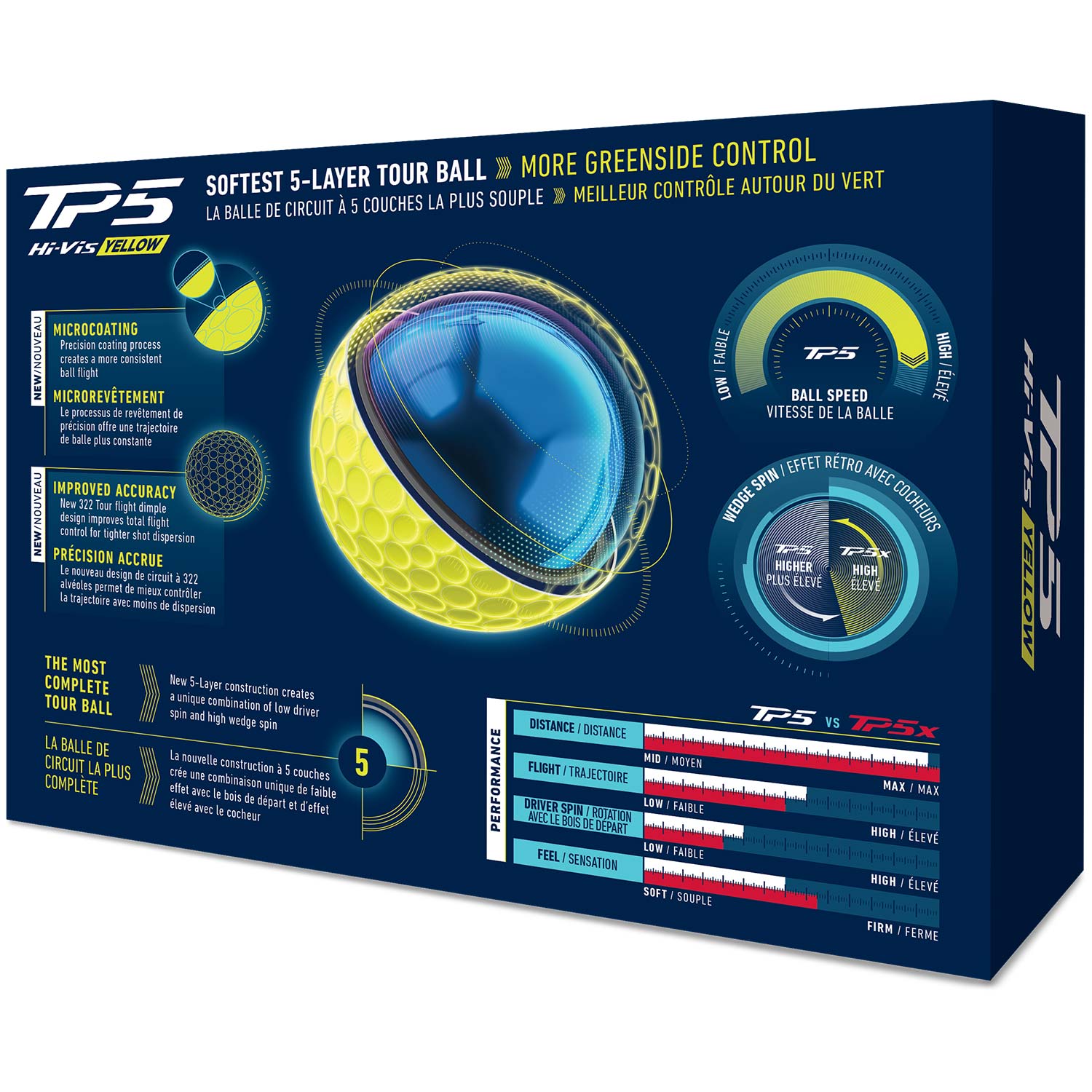 TP5’s largest core to date decreases contact time at impact and maximizes energy transfer for faster ball speeds and more distance.